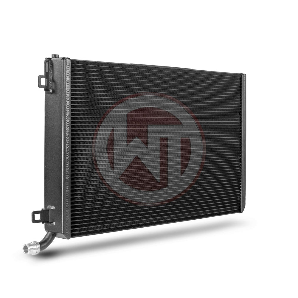 The new developed competition racing core of the WAGNERTUNING high performance water coolers increase the radiator volume of the OEM water coolers by a total of 80 %. The calculated ratio between the inner and outer cooling surface generates a maximum heat transfer and allows at the same time enough air flow for the surrounding components (for example the engine water cooler) for its own heat exchange. The water coolers are equipped with a heat-conductive anti corrosion coating to ensure a lasting cooling effect. The plug & play installation of the system is simple and easy to perform (installation instructions included).