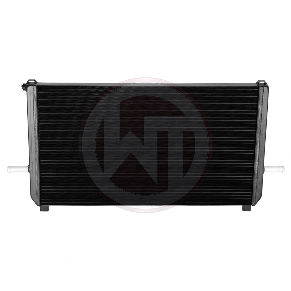 The new developed competition racing core of the WAGNERTUNING high performance water coolers increase the radiator volume of the OEM water coolers by a total of 78 %. The calculated ratio between the inner and outer cooling surface generates a maximum heat transfer and allows at the same time enough air flow for the surrounding components (for example the engine water cooler) for its own heat exchange. The water coolers are equipped with a heat-conductive anti corrosion coating to ensure a lasting cooling effect. The plug & play installation of the system is simple and easy to perform (installation instructions included).