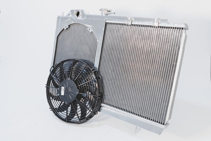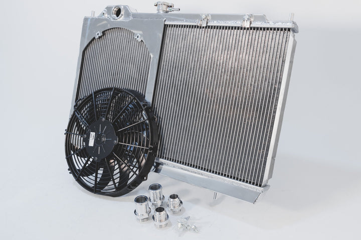 CSF Race Radiator for Mitsubishi Evo 7/8/9 - Full Size Slim Radiator w/ 12-inch SPAL fan & Shroud / Adjustable -16 or slip-on fittings