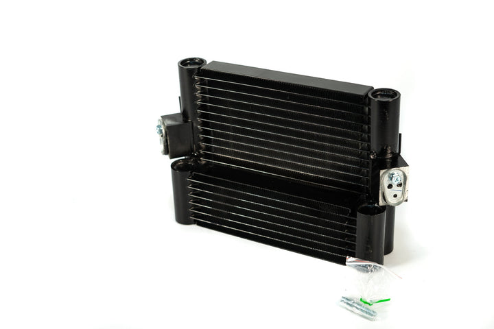- “Drop-in fit” requiring no modifications to install. Accepts all attaching OEM components including oil-line connections, mounting brackets, and shroud/ducting